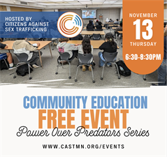 C.A.S.T. prevents exploitation in the Twin Cities and Western WI through education, awareness, and collaboration. Our largest and fastest growing program is Power Over Predators (POP) - a nationwide curriculum that teaches middle and high school students internet safety, healthy vs. unhealthy relationships, and how to ask for help if you need it.