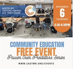 C.A.S.T. prevents exploitation in the Twin Cities and Western WI through education, awareness, and collaboration. Our largest and fastest growing program is Power Over Predators (POP) - a nationwide curriculum that teaches middle and high school students internet safety, healthy vs. unhealthy relationships, and how to ask for help if you need it.